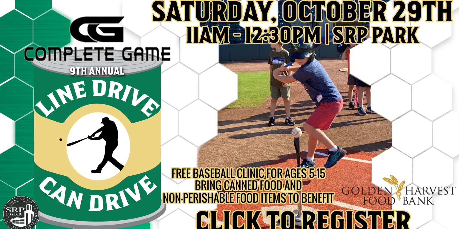 NORTH AUGUSTA, SC – The Augusta GreenJackets, Single-A Affiliate of the Atlanta Braves, in conjunction with Complete Game, are excited to announce the 9th Annual Line Drive Canned Food Drive FREE Baseball Clinic in memory of Terry Childers Sr. on Saturday, October 29th from 11:00 am – 12:30 pm.