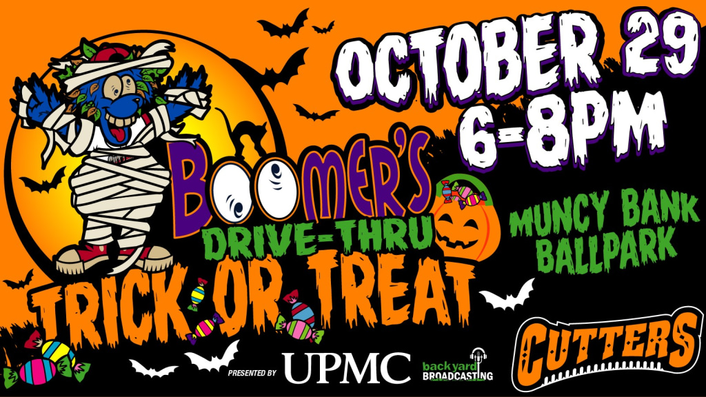 The Williamsport Crosscutters, in association with the City of Williamsport, have announced the return of Boomer’s Drive-Thru Trick or Treat, a free trick or treating experience for children and their families. The event will take place in the Muncy Bank Ballpark parking lot on Friday, October 29 from 6pm-8pm and is sponsored by UPMC and Backyard Broadcasting.