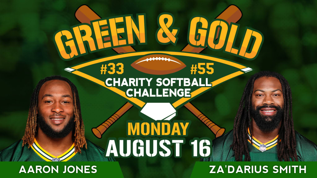 GRAND CHUTE, WI – Aaron Jones and Za’Darius Smith are set for something very different for this year’s Green and Gold Charity Softball Event. The duo will host the Green & Gold Charity Softball Challenge on Monday, August 16 at Neuroscience Group Field at Fox Cities Stadium. The one-of-a-kind event will start at 7:05pm.