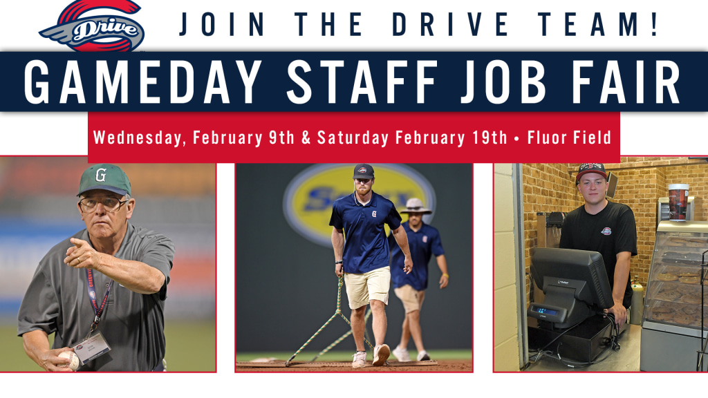 The Drive and West End Events will be hosting a pair of upcoming Job Fairs – Wednesday, February 9th from 5:30 to 7:30, and Saturday, February 19th from 10 AM to 1 PM. Entrance for the Job Fair will be through the Main Street Gate at Fluor Field.