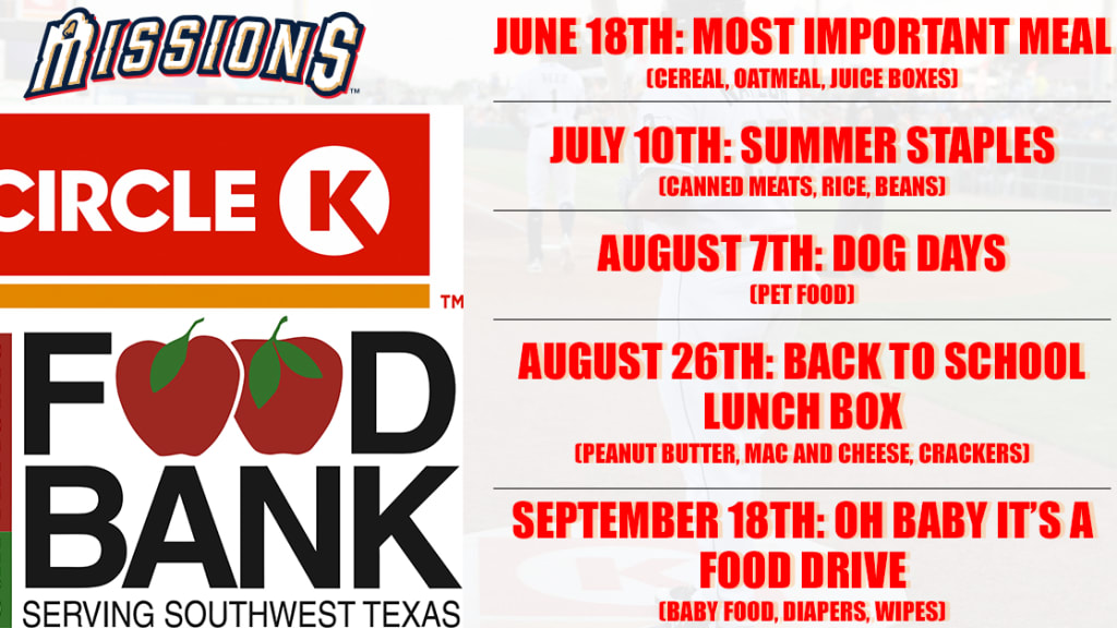 SAN ANTONIO – The San Antonio Missions baseball club and Circle K are partnering with the San Antonio Food Bank to host food drives at Nelson Wolff Stadium this summer to provide aid to the San Antonio community hit so hard during the Covid-19 pandemic.