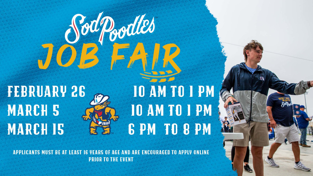 AMARILLO, Texas – The Amarillo Sod Poodles will be hosting three job fairs looking to hire part-time seasonal positions and fill a variety of roles for the 2022 baseball season at HODGETOWN. The first two job fairs are scheduled for Saturday, February 26, and Saturday, March 5 from 10:00 a.m. to 1:00 p.m. The third and final event is scheduled for Tuesday, March 15 from 6 p.m. to 8 pm with all three being held in the Fairly Group Club Level inside HODGETOWN.