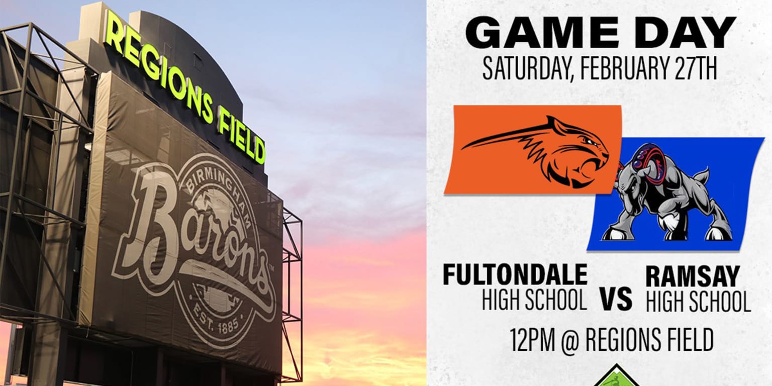 Regions Field is honored to announce that it will host the Fultondale High School Wildcats home opener against the Ramsay High School Rams on Saturday, February 27th. The game will begin at 12:00 p.m. with gates opening at 11:00 a.m.