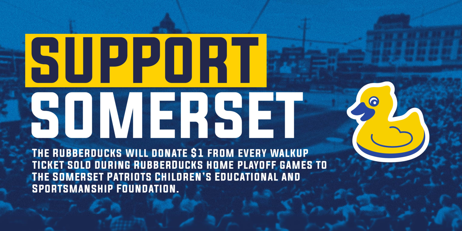(AKRON, OHIO) September 22, 2021 – In the wake of the devastating flooding from the remnants of Hurricane Ida the Somerset County, New Jersey, community experienced on Sept. 2, the RubberDucks hope to aid in the rebuilding efforts by sending donations to the Somerset Patriots official charity. The club will donate $1 from every walkup ticket sold during RubberDucks home playoff games to The Somerset Patriots Children’s Educational and Sportsmanship Foundation.