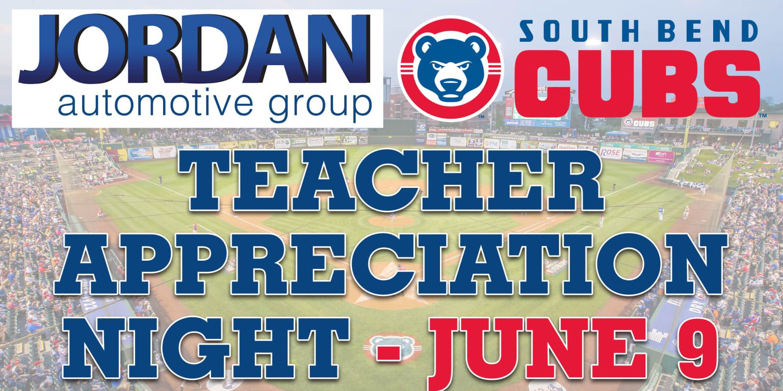SOUTH BEND, IN – The South Bend Cubs are excited to partner with Jordan Automotive for another Teacher Appreciation Night at Four Winds Field on Wednesday, June 9.