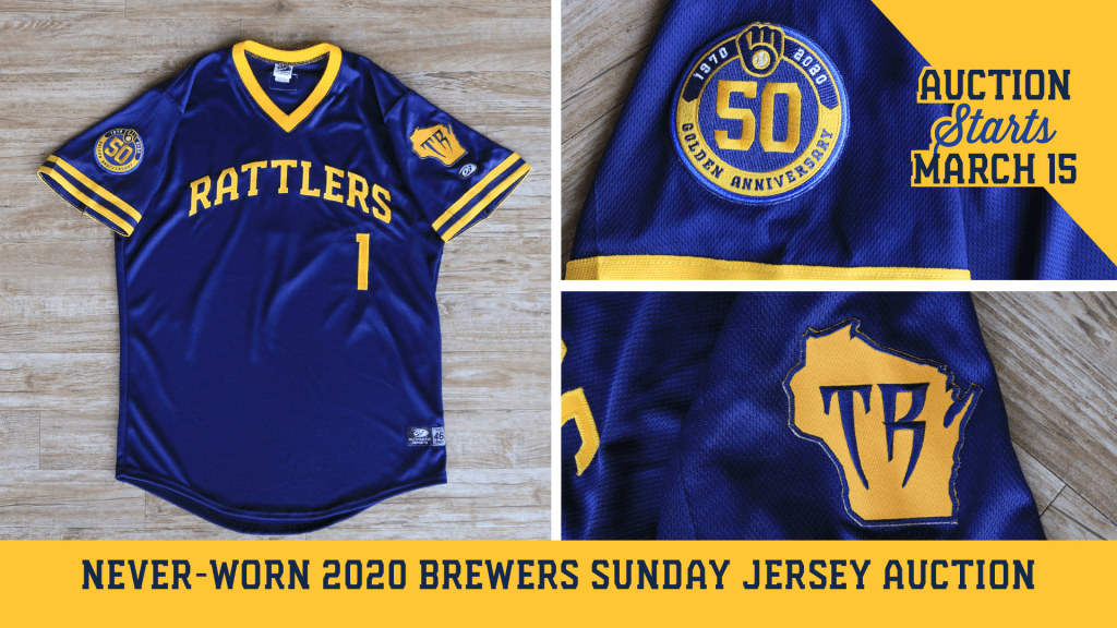 GRAND CHUTE, WI – The Wisconsin Timber Rattlers never got on the field in 2020 and never had a chance to wear the Brewers Sunday jerseys that were picked out for them. There will be new Brewers Sunday jerseys for the 2021 Timber Rattlers and that left the never-worn jerseys sitting in the team offices. These pieces of a season that never happened won’t be around our offices much longer because there will be a Charity Auction starting Monday, March 15 at 9:00am. You will be able to win one of the jerseys up for bid and help raise money for Timber Rattlers Give Back.