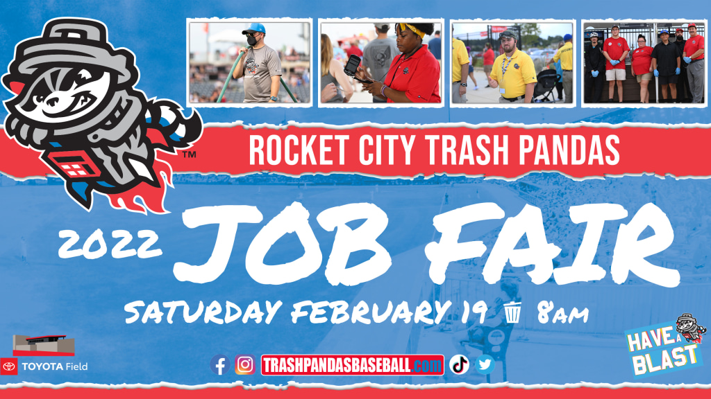 In preparation for the second season in franchise history in 2022, the Rocket City Trash Pandas will be hosting a job fair at Toyota Field on Saturday, February 19 from 8 a.m. to noon.